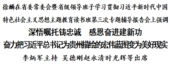 本報訊(記者 許邵庭 曾書慧)根據黨中央部署和省委工作安排,4月23日,省委常委會暨省級領導班子學習貫徹習近平新時代中國特色社會主義思想主題教育讀書班第三次專題輔導報告會在貴陽舉行。省委書記、省委學習貫徹習近平新時代中國特色社會主義思想主題教育領導小組組長徐麟圍繞“學習貫徹習近平總書記視察貴州重要講話精神和對貴州工作重要指示批示精神”作專題輔導報告。他強調,要深入學習貫徹習近平總書記視察貴州重要講話精神和對貴州工作重要指示批示精神,更加深刻領悟“兩個確立”的決定性意義,更加堅定自覺衷心擁護“兩個確立”、忠誠踐行“兩個維護”,深悟囑托鑄忠誠、感恩奮進建新功,奮力把習近平總書記為貴州描繪的宏偉藍圖變?yōu)槊篮矛F實。