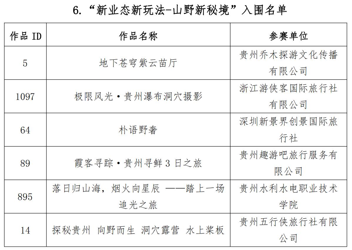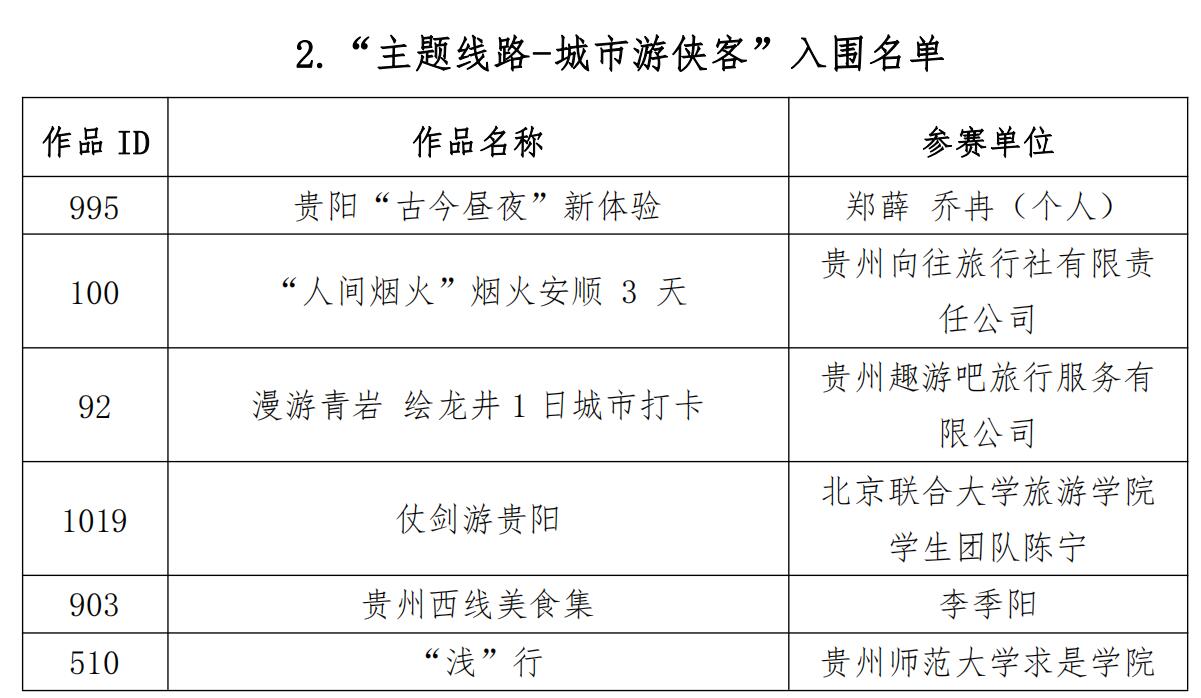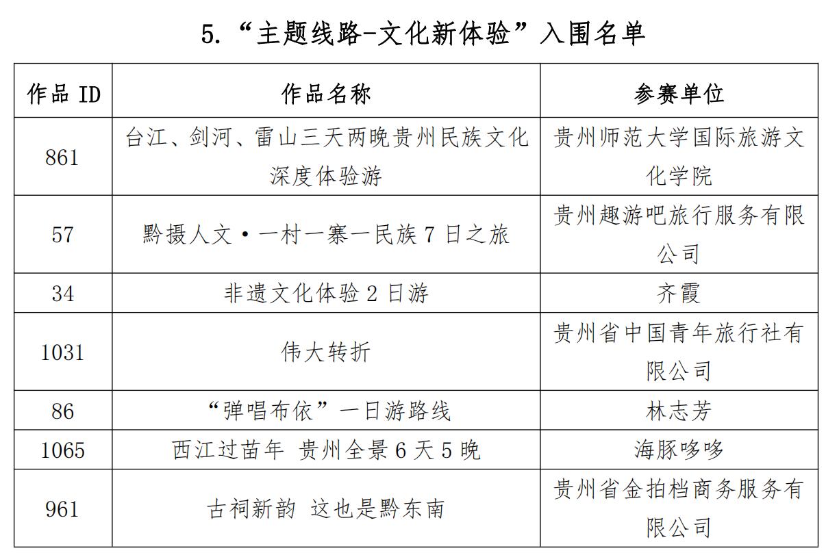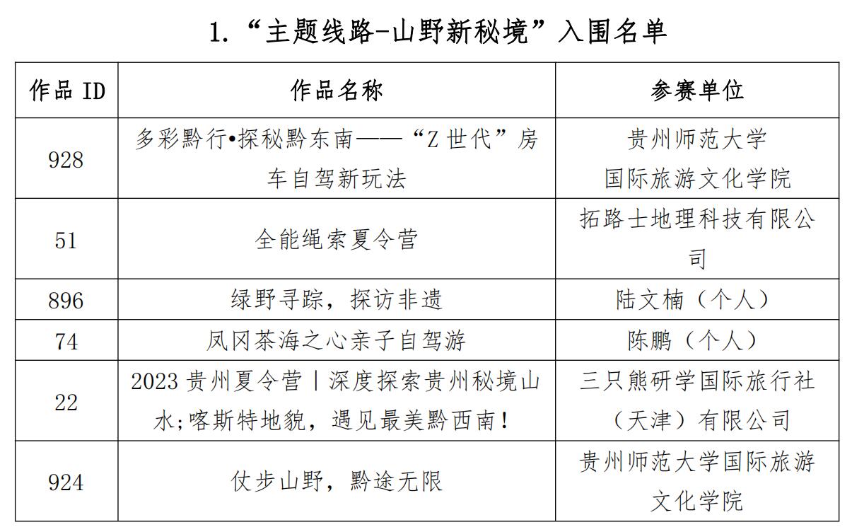 2023貴州省文旅產品創意大賽作品復審名單公布