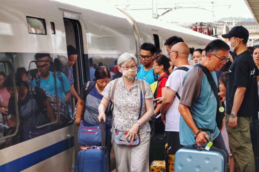 由香港永安旅游組織的180人旅行團從香港乘專列直達貴陽高鐵東站。