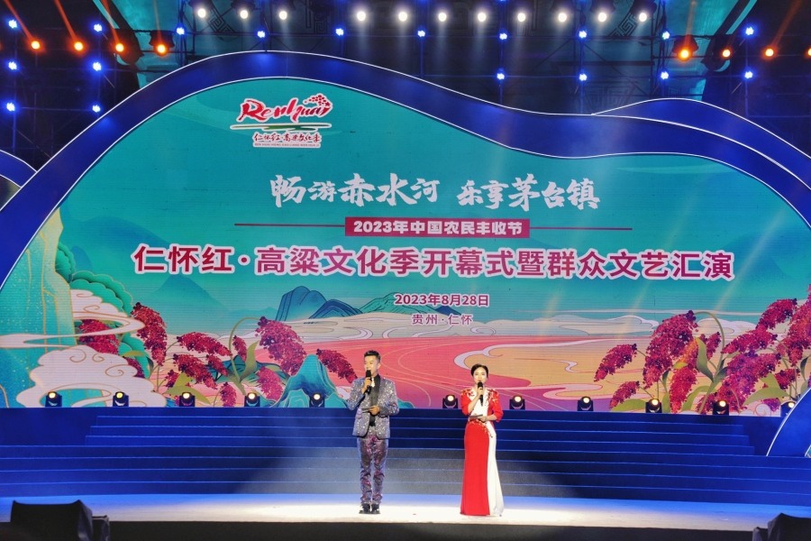 8月28日晚,“暢游赤水河·樂享茅臺鎮”2023年中國農民豐收節——仁懷紅·高粱文化季開幕式暨群眾文藝匯演在仁懷市酒都廣場舉行。