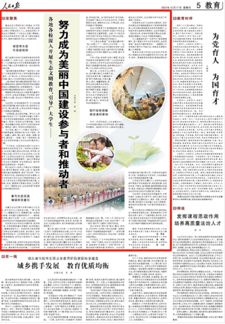 與此同時,多地學(xué)校還利用植樹節(jié)、世界環(huán)境日、全國生態(tài)日等節(jié)點,組織以踐行生態(tài)文明建設(shè)為主題的征文、演講、書畫、手抄報等比賽,將校園文化活動融入生態(tài)文明教育,營造保護(hù)校園環(huán)境、守護(hù)美好家園的育人氛圍。