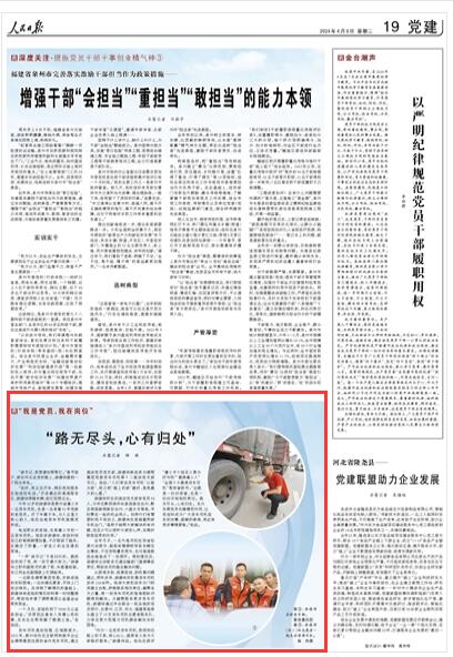 “作為一名黨員貨車司機,我深知在路上的不易,將心比心,就更有義務為大家做好服務。”游德祥說。他先后獲評“遵義市十佳見義勇為好市民”“最美遵義人”“全國十大最美貨車司機”等榮譽稱號。“這既是一份份榮譽,也是一份份沉甸甸的責任。路無盡頭,心有歸處。充分發揮黨員先鋒模范作用,讓黨組織成為廣大貨車司機堅實的依靠、溫暖的港灣,我還有很多事情要做。”他說。