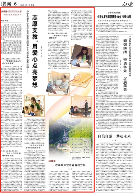 多年來,華中農業大學弘揚志愿精神,積極組織各類支教活動,走進西部,走進社區,走進鄉村。從貴州大山深處到湖北偏遠小鎮,一批批參加志愿服務的學子用知識和愛心熱情服務,在支教活動中收獲成長。