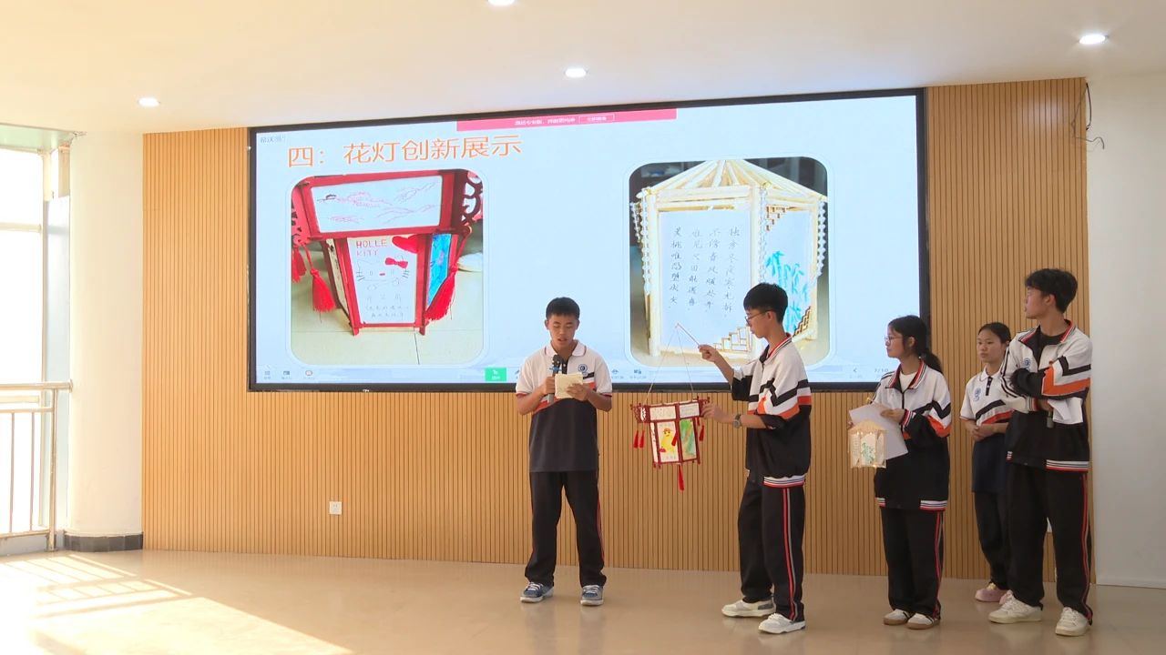 同學(xué)們手提作品,通過(guò)播放PPT和現(xiàn)場(chǎng)講解,回顧各小組在創(chuàng)作花燈燈具中的研學(xué)之旅。