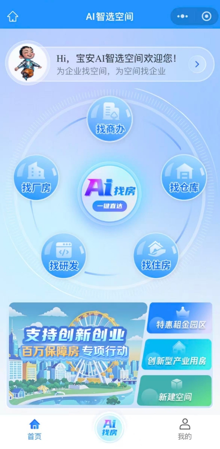 上線的“寶安AI智選空間”平臺,集納了寶安區2600多個園區、超1億平方米產業空間數據,具有AI語音輸入直達需求、地圖篩選精準定位、線上視頻實景看房、全流程一鍵辦理等四大核心功能。