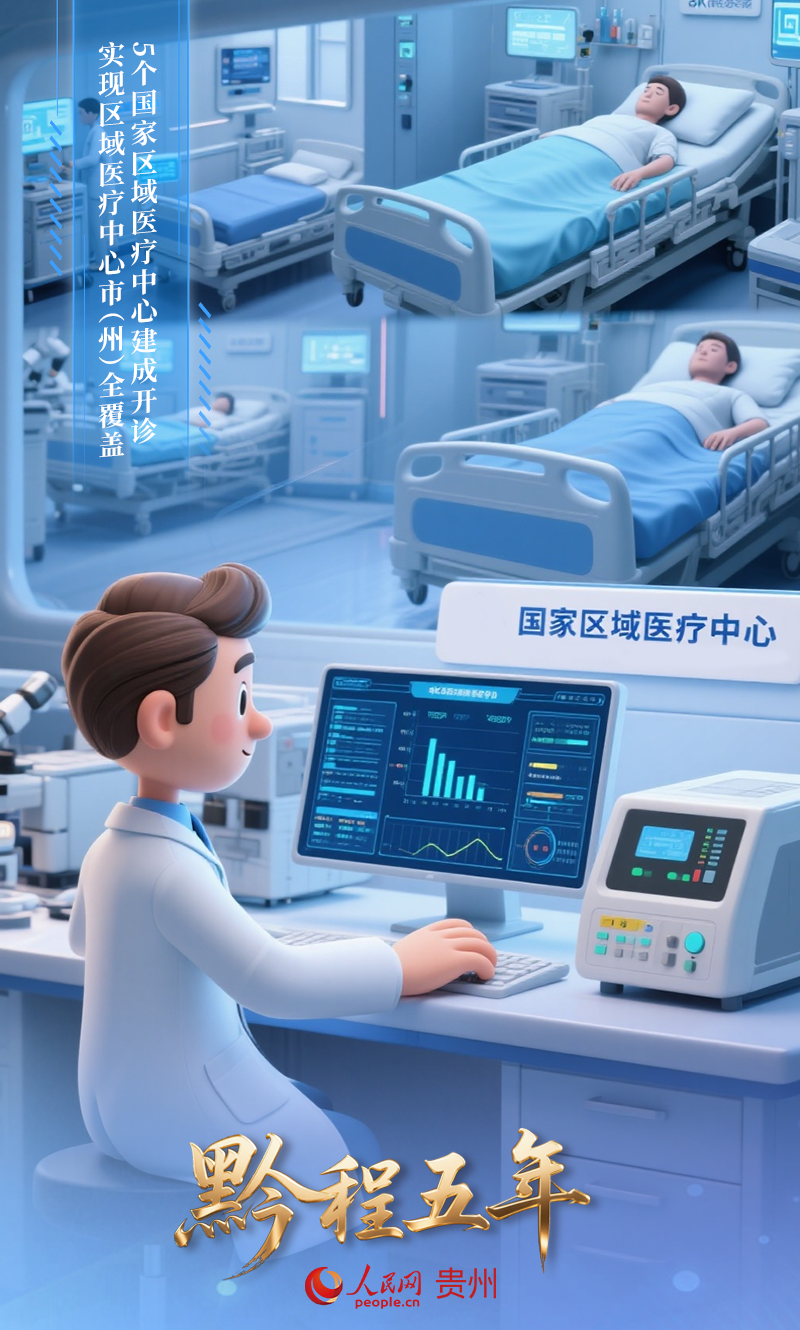 5個國家區域醫療中心建成開診,實現區域醫療中心市(州)全覆蓋。省外三甲醫院對貴州縣級醫院協作幫扶全覆蓋,每千人口醫療床位數達8.3張、醫師數3.5人。