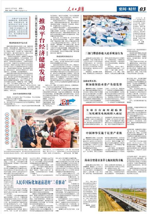 本報(bào)北京12月21日電(記者谷業(yè)凱)記者從中核集團(tuán)獲悉,12月20日,全球首臺(tái)商用超臨界二氧化碳發(fā)電機(jī)組在貴州六盤水首鋼水鋼集團(tuán)成功商運(yùn),這也是超臨界二氧化碳余熱發(fā)電技術(shù)“超碳一號(hào)”的全球示范工程。“超碳一號(hào)”標(biāo)志著超臨界二氧化碳發(fā)電技術(shù)從實(shí)驗(yàn)室推向商業(yè)落地,有助于突破世界范圍內(nèi)中小功率規(guī)模、中高溫?zé)嵩锤咝Ю玫募夹g(shù)瓶頸。