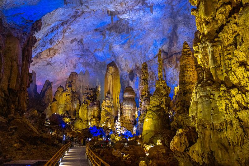 什么才是溶洞的美?我們認(rèn)為在于回歸真實——摒棄五彩斑斕,以冷白、暖黃等色調(diào)勾勒鐘乳石的天然肌理。