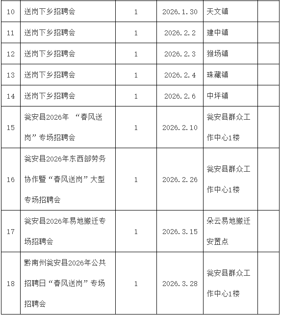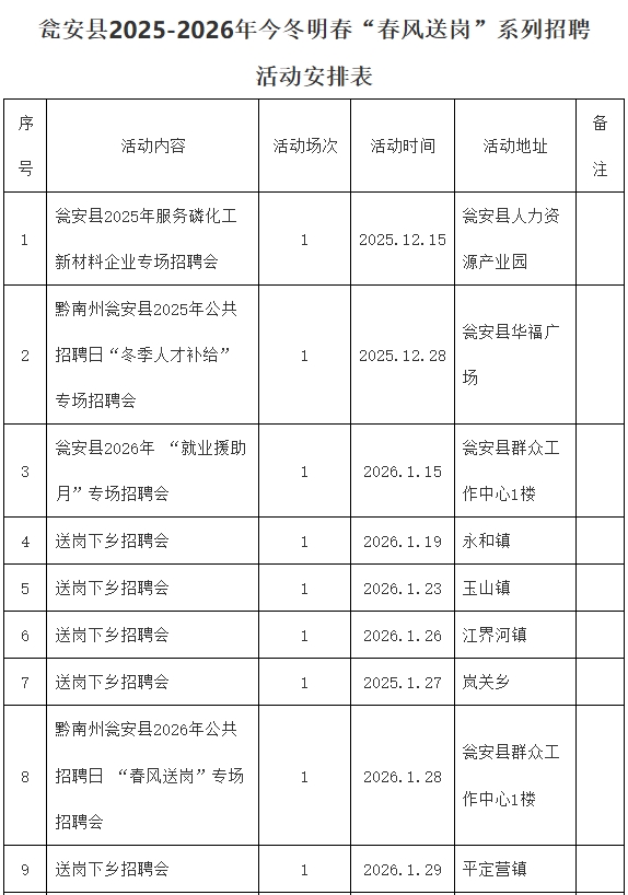 甕安縣2025-2026年今冬明春“春風(fēng)送崗”招聘活動(dòng)安排來了!