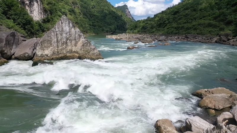 湍急的河水裹挾著礁石奔涌
