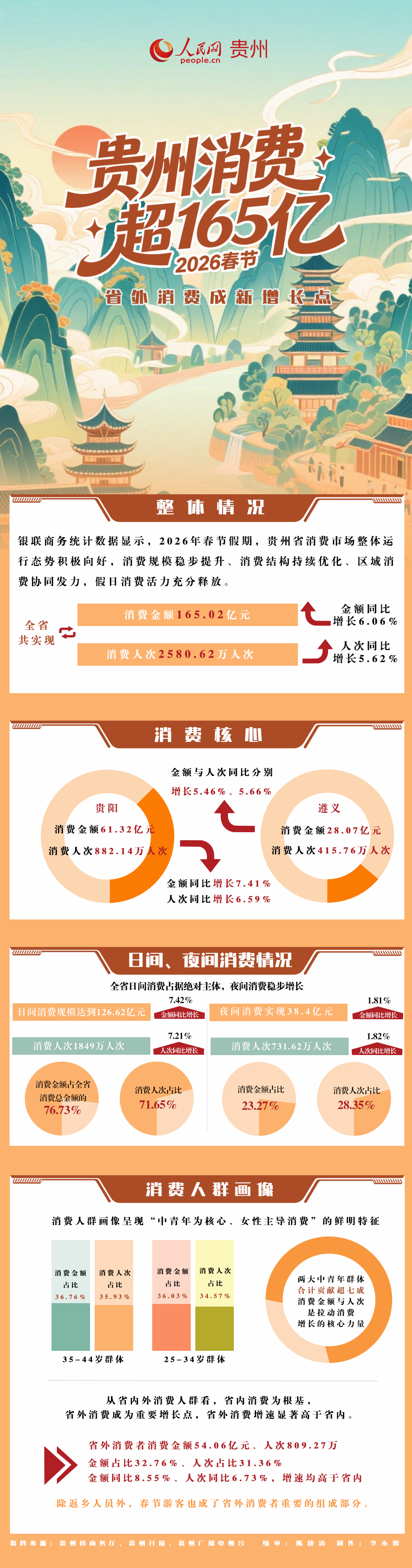 圖說 | 省外消費(fèi)成新增長點(diǎn)!2026春節(jié)貴州消費(fèi)超165億元 中青年為消費(fèi)主力