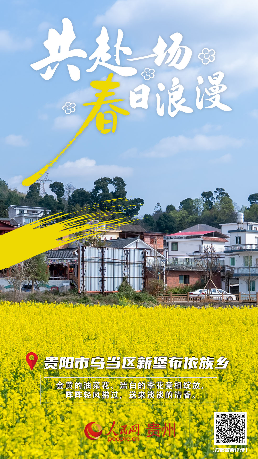 春風拂過黔中大地,從貴陽市烏當區新堡布依族鄉的金黃油菜花海,到清鎮市紅楓湖畔的玉蘭花海;從畢節納雍總溪河景區的櫻桃花海,到普定縣陳家寨村的灼灼桃花;從獨山縣朵羅村的素白梨花,到貴安新區的萬畝櫻花,再到施秉、赫章的油菜與梨花盛景,貴州各地繁花次第綻放,粉白花枝與明黃花田在青山綠水間鋪展成詩意畫卷。這些散落在鄉野間的春日盛景,既是自然饋贈的視覺盛宴,也承載著鄉村旅游的蓬勃生機,邀你共赴這場春日之約,在繁花簇擁中感受黔地溫柔與爛漫,在煙火氣息里尋覓春天的腳步。