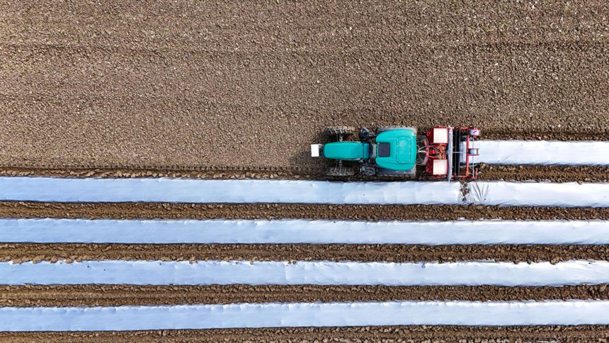 “這臺(tái)覆膜一體機(jī),只要地塊平整,一天輕松完成40畝地的起壟、覆膜、鋪滴灌帶、施底肥全套活兒。”黎治蛟說(shuō),要是全靠人工,這四項(xiàng)工作,至少得125個(gè)勞動(dòng)力趕工一天,才能趕上一臺(tái)機(jī)器的效率。